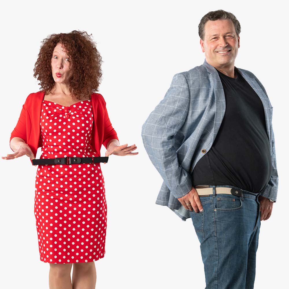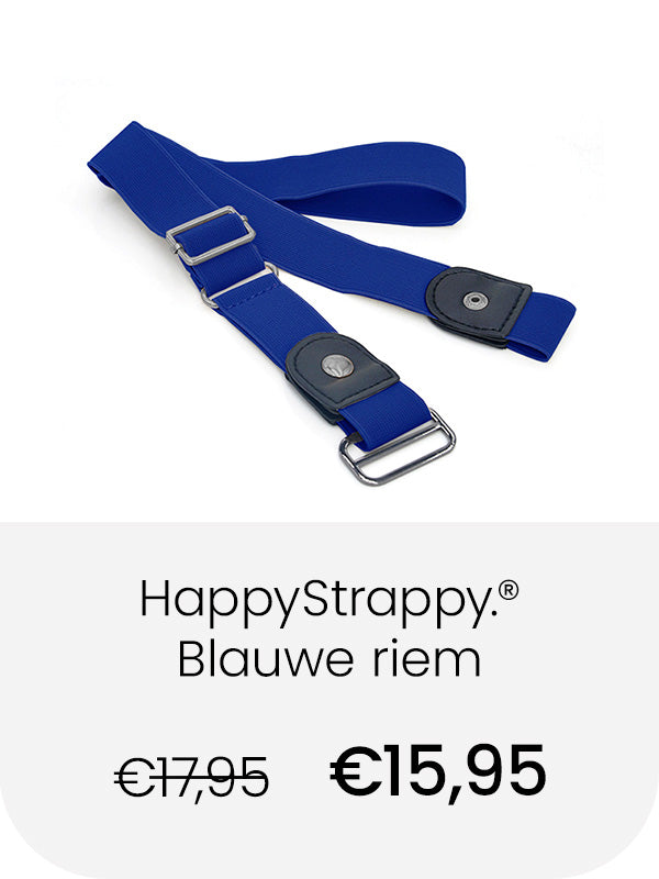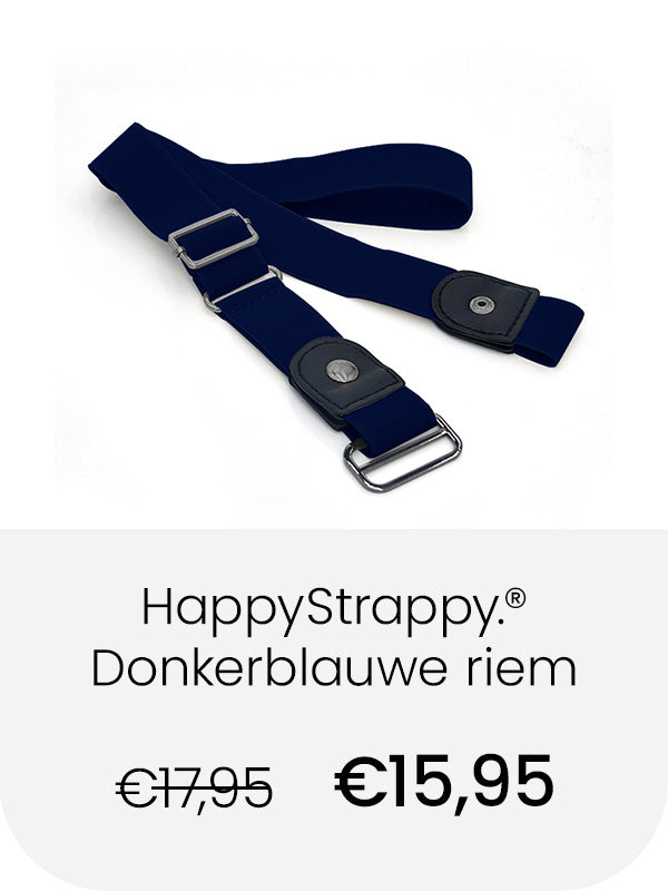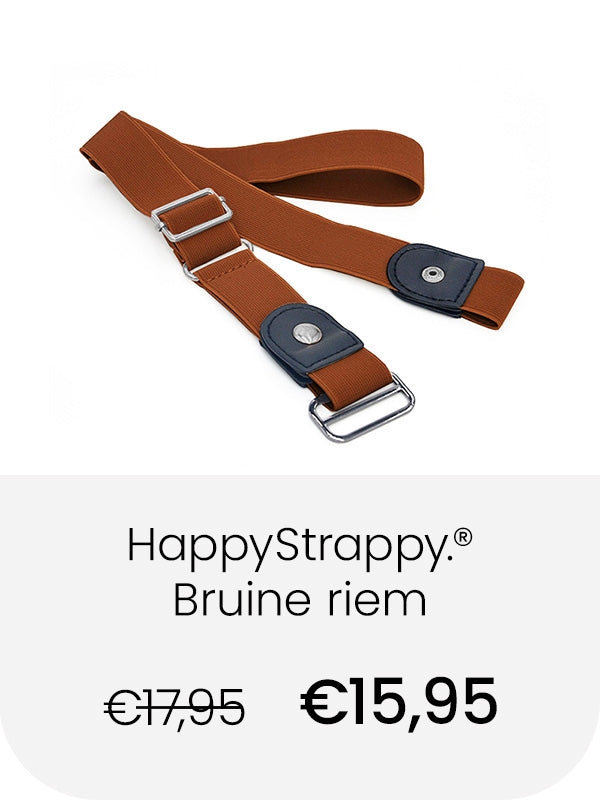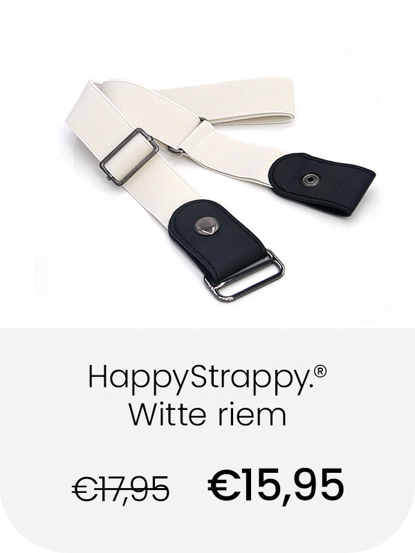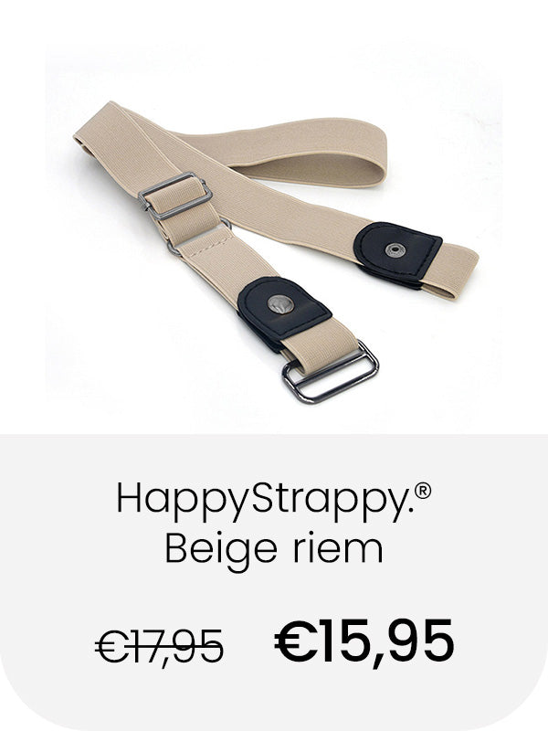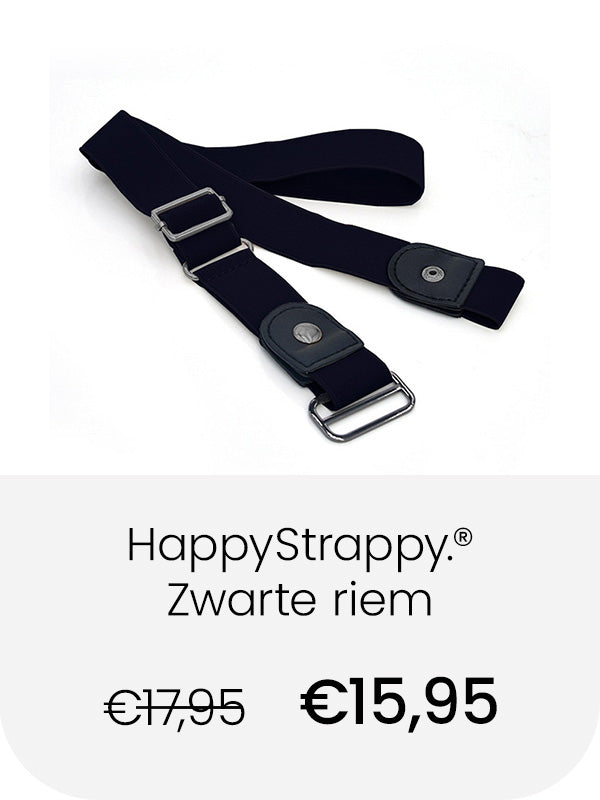 De elastische broekriem van HappyStrappy. rekt met elke beweging mee, waardoor die altijd perfect past! Nooit een drukkende gesp bij je buik. Geen gedoe met de riem losser of vaster maken, zelfs na een grote maaltijd!