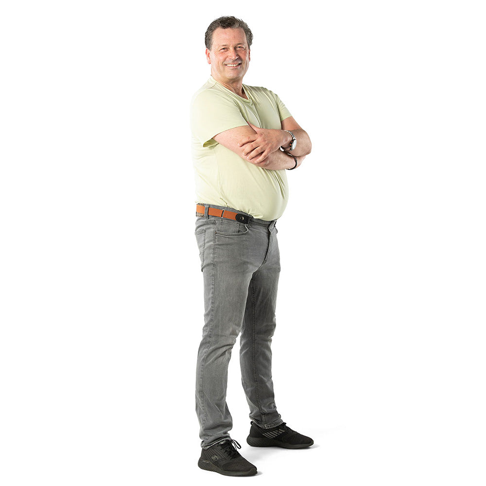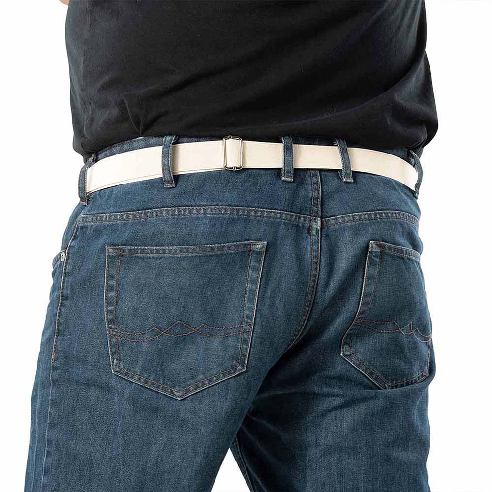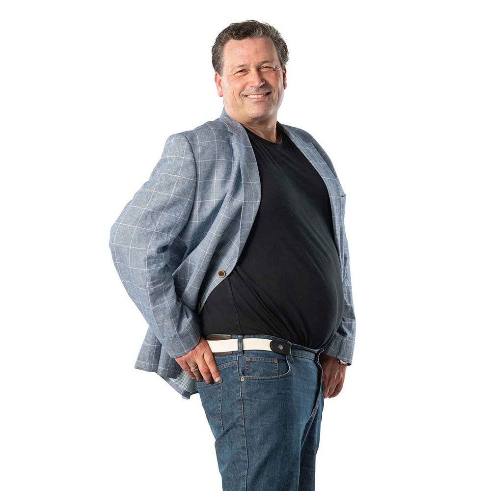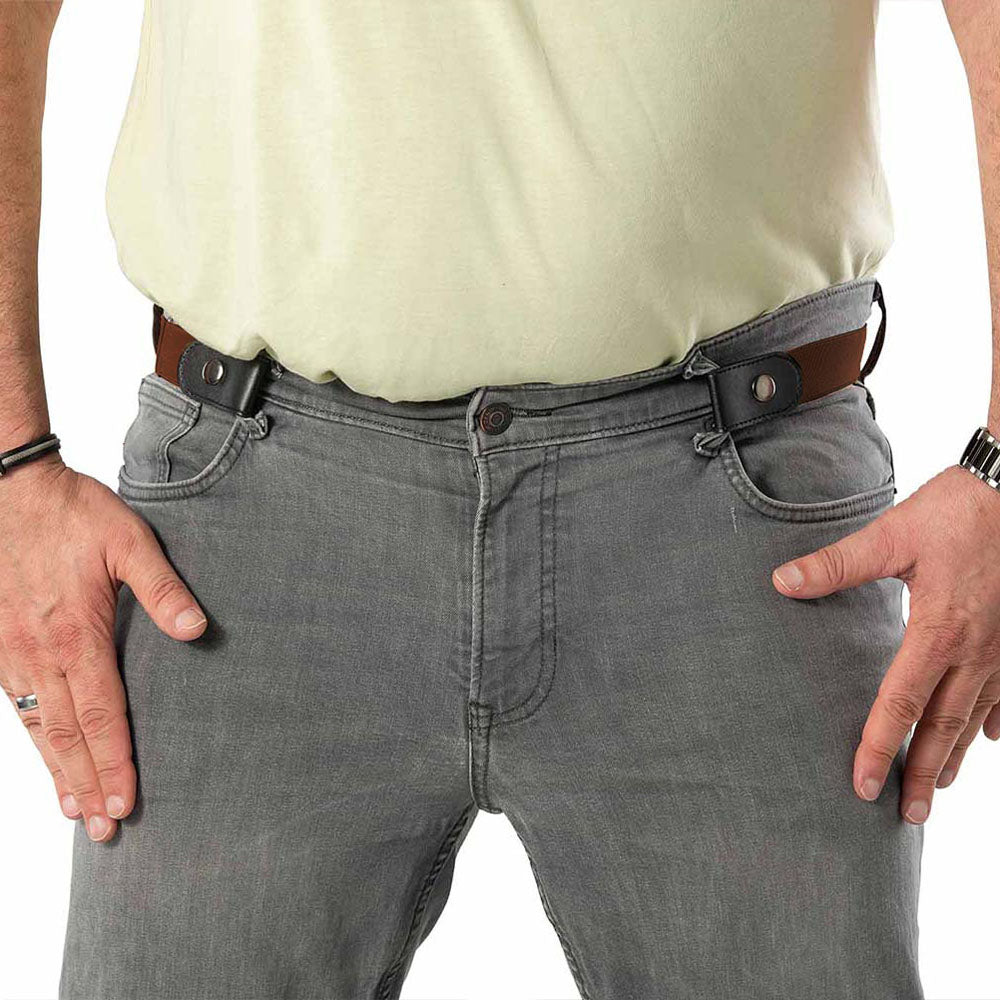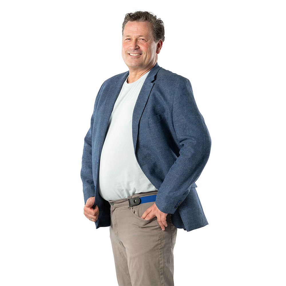 De elastische riem rekt met elke beweging mee, waardoor die altijd lekker zit! Nooit meer een knellende of een te los zittende riem. Dat constante gedoe met ophijsen en verstellen is verleden tijd, zelfs na een grote maaltijd!