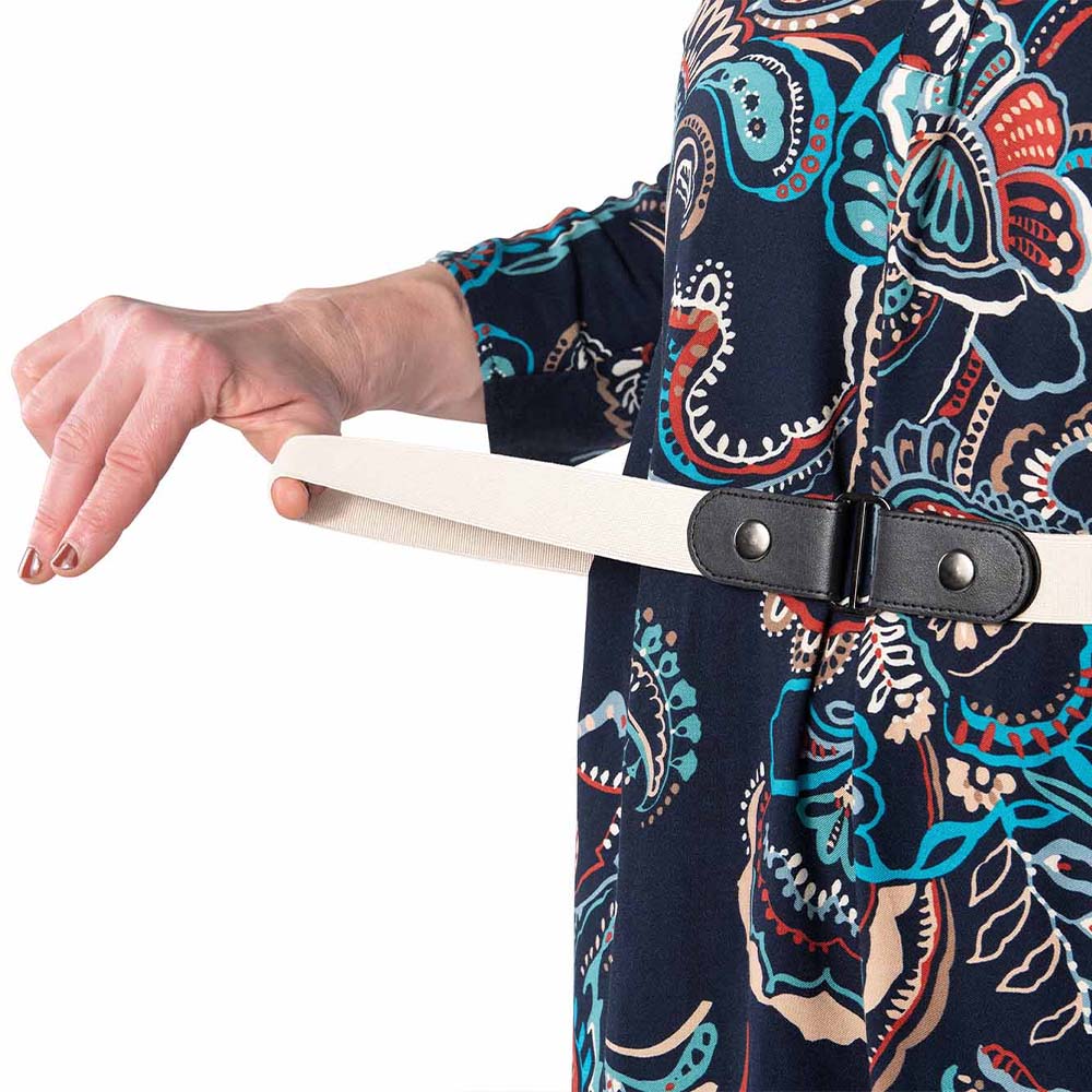 Met zijn verstel- en rekbaarheid is deze riem geschikt voor iedereen met een taille-omtrek van 80 cm tot 180 cm. Man of vrouw, van senior tot zwanger. Elke riem komt met een bijgeleverd gespje, zodat deze ook op een jurkje past.